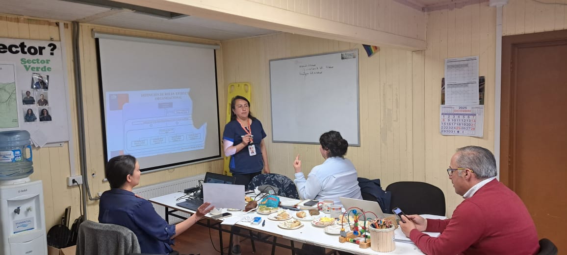 La primera jornada se desarrolló en el Hospital Comunitario de Achao y contó con la participación de la plana directiva del establecimiento. En la instancia se avanzó en la construcción de productos clave para el trabajo anual: un borrador de estructura organizacional para liderar el proceso, un mapa preliminar de procesos del hospital y la identificación inicial de unidades operativas relevantes para la gestión del riesgo.